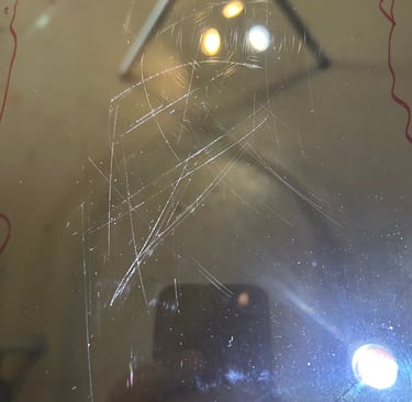 Scratches on glass, whether on windshields, windows, or other surfaces, can often be effectively removed through professional polishing techniques. We use a proprietary technology. Our system uses a custom, lightweight, handheld, high-speed polisher, suspended compounds, and custom flat assorted pads. Our method gently buff away surface-level imperfections, restoring clarity and smoothness without compromising the glass's structural integrity. At our company, we specialize in glass scratch removal services that target minor to moderate scratches caused by wipers, debris, or everyday wear. By choosing our professional repair over a full replacement, customers typically save significantly. But the main benefit is the fact that you keep the factory seal and maintain the original structure surrounding the windshield. This affordable, efficient solution not only restores optimal visibility and safety but also extends the life of your existing glass, helping you avoid unnecessary expenses while delivering long-lasting, like-new results.